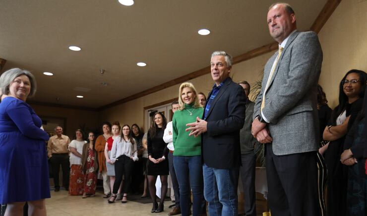 CEDAR CITY — Jon Huntsman Jr. kicked off his campaign to return as Utah’s governor Thursday with a stop at an accounting firm, telling the employees and customers gathered that their southern Utah community is “ground zero” for how the state will deal with what he sees as its most pressing issue — growth.