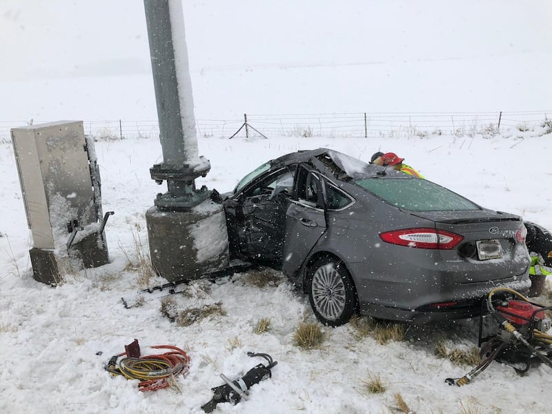 A car driving north on I-15 near the Willard Bay exit lost control and slid off the road to the right, Utah Highway Patrol said. It slid onto the shoulder and down a slight decline before hitting a large cement sign base on the driver’s side.