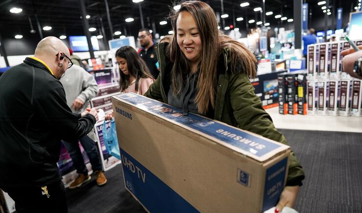 As the Juarez brothers waited in line with hundreds of other people, the employees inside were listening to what sounded a lot like a pre-game pep talk from a pair of managers. After a reminder that making customers happy was the No. 1 priority, they call them into a huddle and lead the team in a call and response type cheer ending with the team — “Best Buy!”