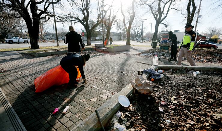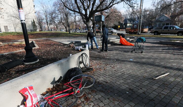 Meanwhile, tents and makeshift encampments continue to crop up nightly at Salt Lake City’s Library Square, the new hot spot downtown for on-street camping. With the help of law enforcement, officials on Tuesday swept the area as part of a health department cleanup after posting notices the camps were illegal.