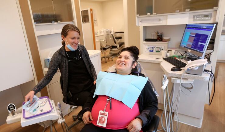 Since opening in May, the Merit dental clinic — with two part-time dentists, three hygienists and bilingual assistants — has served 1,136 patients with 2,724 appointments, providing more than $340,000 in benefits to employees. Patients don’t pay anything out of pocket and can get up to $3,000 in care per person each year.