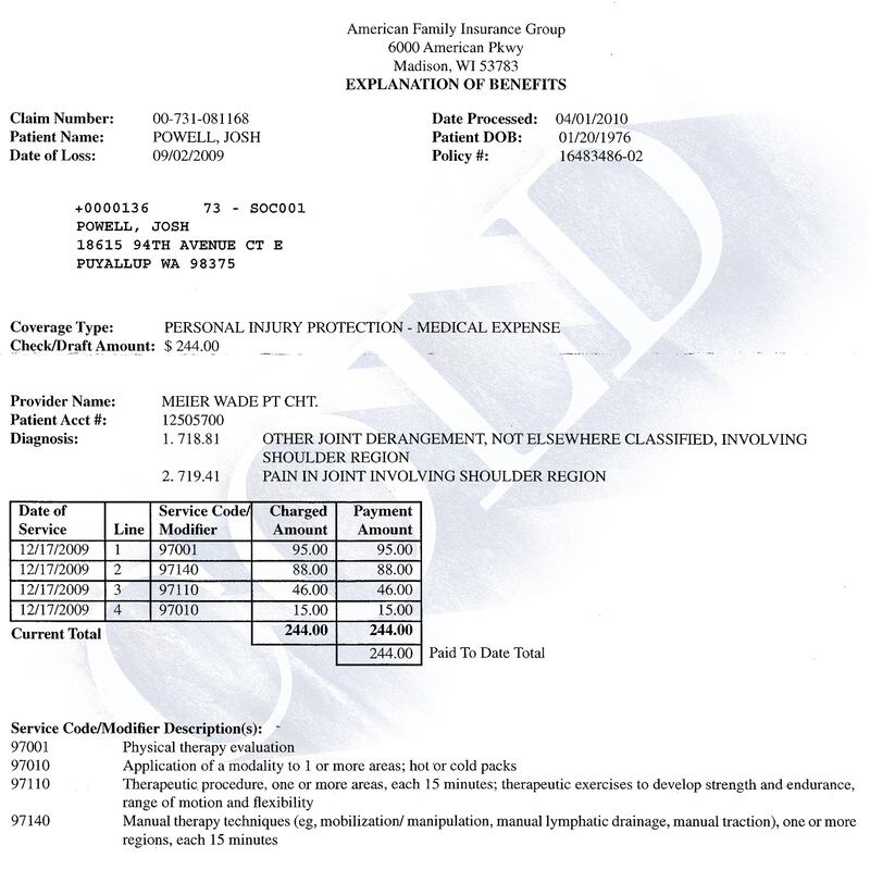 In the months that followed, both Josh and Susan Powell underwent extensive chiropractic and massage therapy care. They billed those visits to their auto insurance. Their insurance provider, Pemco, eventually ordered independent medical examinations over questions about the necessity of treatment. Pemco ultimately refused to pay for some of the treatments.