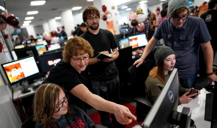Marchand said his team is split into three microteams each tasked with a different area of focus in the development project. The design, programming and art teams all work together, based on a plan that has a hard deadline coming up in March and the requirement to have their game completed and available to the public by that end point.
