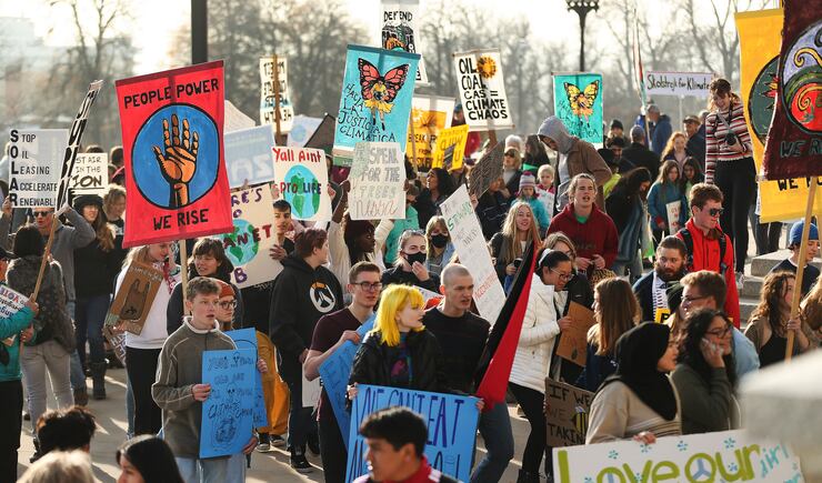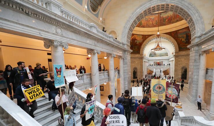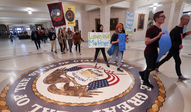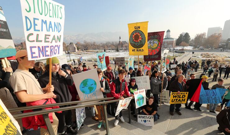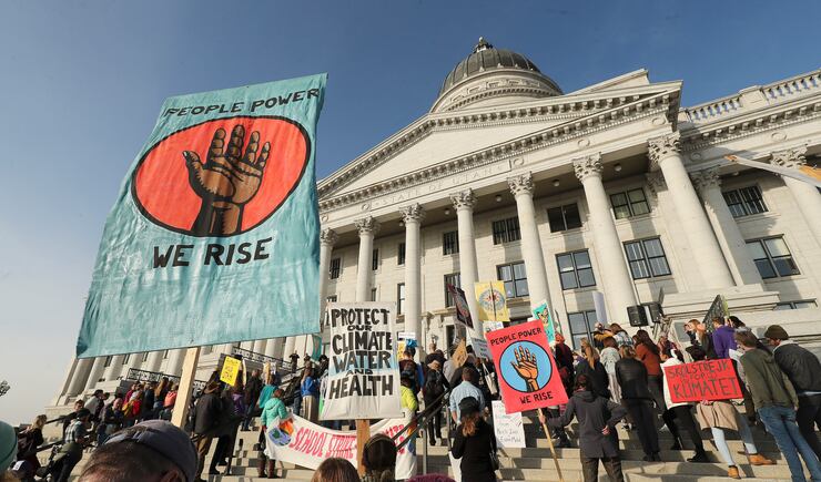 SALT LAKE CITY — Young activists joined by some older counterparts rallied on the steps of the state Capitol Friday about climate change and issues like the inland port before delivering 4,000 letters to Gov. Gary Herbert’s office demanding political action.