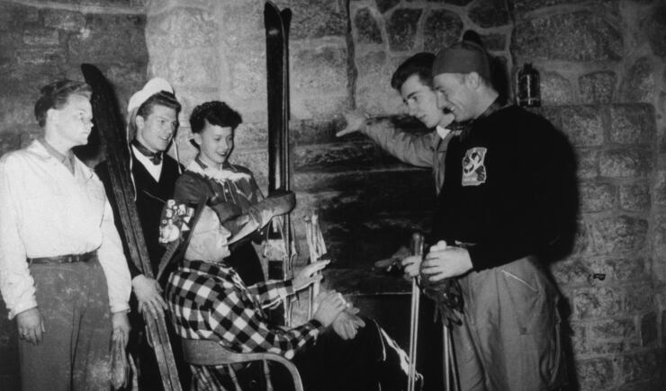 At the base of two of them, the Bay City and Emma, a one-story headquarters-type building was built out of rock. As the mines played out, by 1878 the structure was turned into a general store and post office. A half-century later, when the Alta Ski Area opened in 1938, it became a public shelter, named the Rock Shelter. In 1941 the shelter was renamed the Snowpine Lodge, and in 1948, a man named Paul Partenheimer took over and put in rooms where people could sleep.