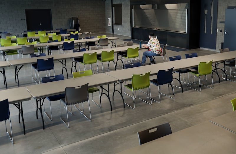As for meals, the cafeteria at the heart of the center can seat all 200 women at once. They'll be served three meals a day — breakfast, lunch and dinner — from a full-sized kitchen. The kitchen is only set up as a warming kitchen, so Catholic Community Services will be delivering prepared lunch and dinners daily, seven days a week. Staff will prepare breakfast on site, Johnston said.