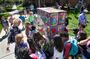 During a debut of the art installation, Biskupski spoke to a group of the school’s third graders whose art was featured on the box.