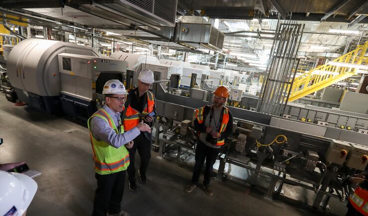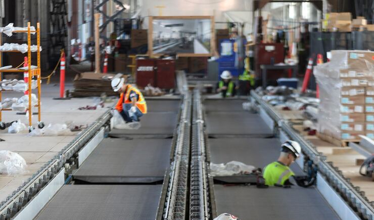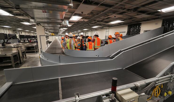 The behind-the-scenes tour gave media the first glimpses of some of the nearly-finished facilities — including the already functioning baggage processing facility, where crews are now testing the sorting technology. The new system includes 6 miles of conveyor belts, which were whirring during Monday’s tour.