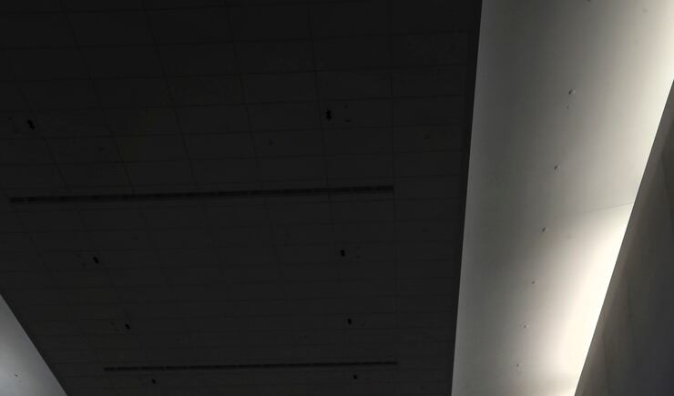 Above the plaza, stretching all the way back across another set of glass windows and doors that separate the public from the secure area of the terminal building, is where a multi-colored art installation called “the Wave” will be installed, Williams said.