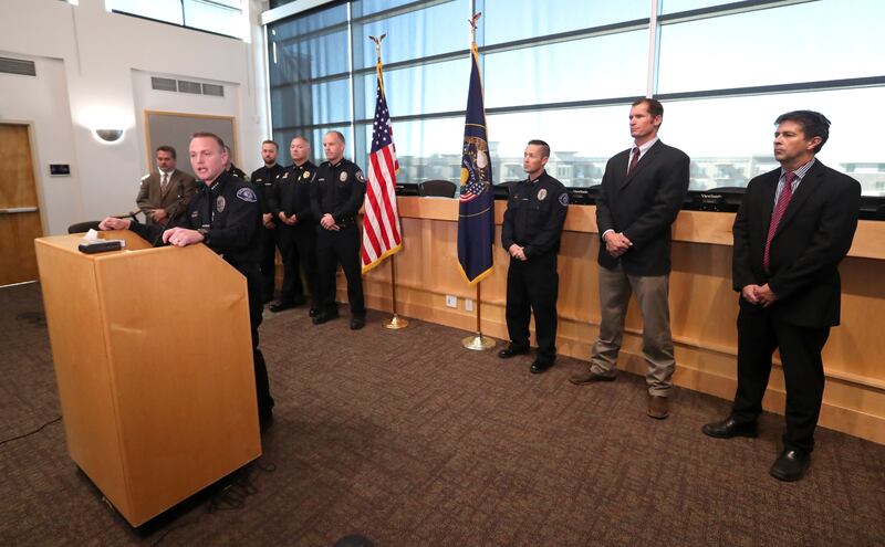 On Thursday, Clearfield Police Chief Kelly Bennett, flanked by representatives from other law enforcement agencies from Utah, Wyoming, the Utah State Crime Lab and the Davis County Attorney’s Office, held a press conference to reveal more details about Burns’ arrest.