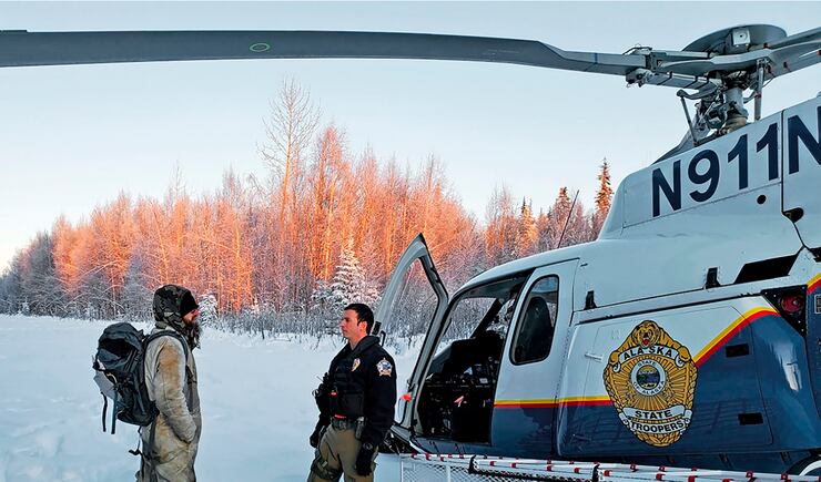 In aerial footage shared by Alaska state troopers, Steele is seen waving to the troopers in a helicopter with a large “SOS” carved out of the snow behind him.