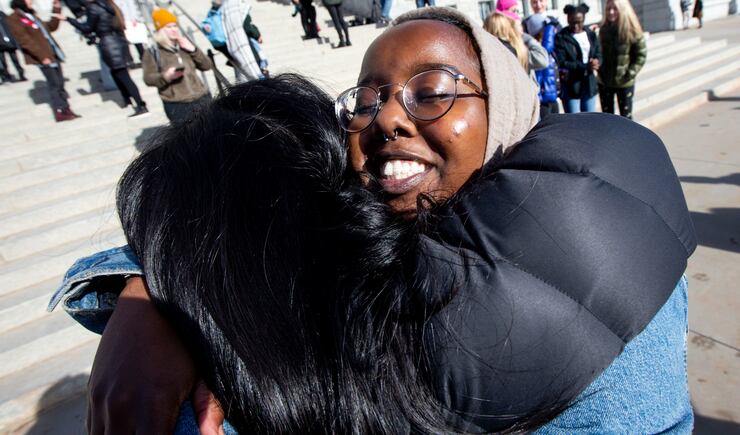 When the group reached the Capitol, speakers focused on the difficulties facing women of color, those in jail and LGBT women. Speakers also called for criminal justice reform, more women in politics and pay equality.