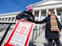 Ashley Fine and Kennedy Stoner, friends of slain University of Utah student Mackenzie Lueck, sported pink baseball caps in memory of their friend and carried a banner with her photo on it. They said they were there to draw attention to victims of violence.