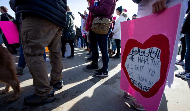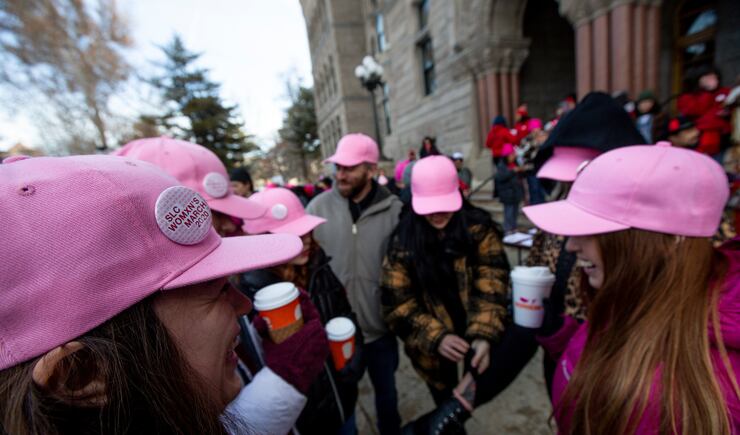 “What brought me out today is that I want to create change. And I feel like right now, we live in a patriarchal society, and I think if we don’t come out, and we don’t put in the effort, then nothing’s going to change,” said Hannah Knaphus, who attended the march with her husband and infant.