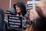 About 50 people marched in the chilly rain Friday outside Romney’s downtown Salt Lake office to demand he support a fair trial so that people can hear all the evidence, including testimony from witnesses such as former national security adviser John Bolton. Several carried brooms to send a message to the senator to stop sweeping justice under the carpet.