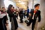 GOP gubernatorial candidates Spencer Cox, Thomas Wright, Aimee Winder Newton, Greg Hughes, Jon M. Huntsman Jr. and Jeff Burningham each addressed the charter school students, who stood on the marble steps on the east side of the rotunda listening three-minute addresses from each.