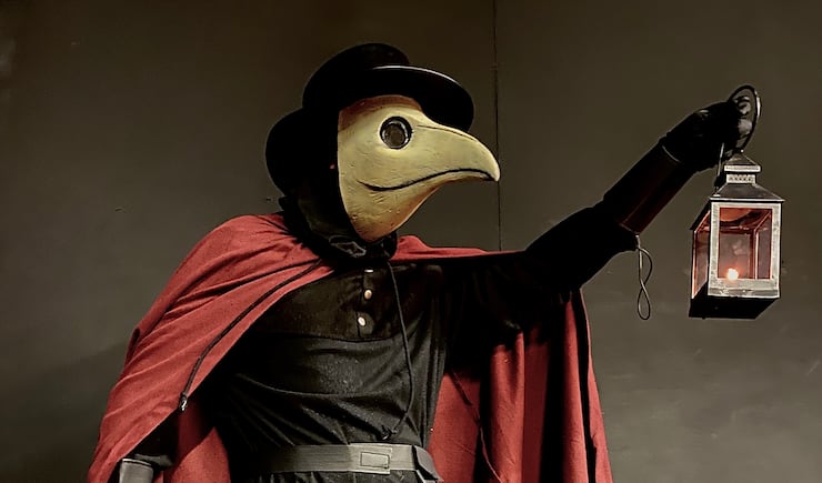 There is of course no bubonic plague flooding the Earth in the year 2020 — at least not that we know of yet — but there is a virus going around, and the Plague Doctor, wearing a beak-like mask just like they did in the 1600s when the Black Death was sweeping the planet, is doing his best to keep that from spreading — with the added bonus of ensuring that the haunted house known as Nightmare on 13th stays open.