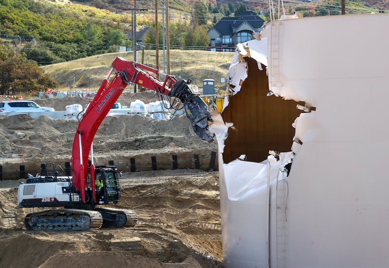 “This (was) the iconic Layton City water tower that’s been as part of the landscape for decades,” he said. “It is a bit of an undertaking to have the crews out there, they have a big piece of equipment that’s got what looks like little scissors on it and they just cut away the water tower to take it down.”