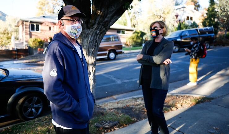 Some talked briefly with media, while others declined. One person said they were with Utahns for Medical Freedom, and that people would fare better against the virus if they ate healthy and got exercise, rather than wear a mask.