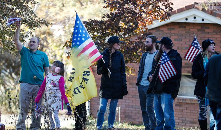 The post announced protests organized by a group calling itself “People’s Right.” Only about 10 showed up in the neighborhood for a Thursday morning protest carrying flags and signs.