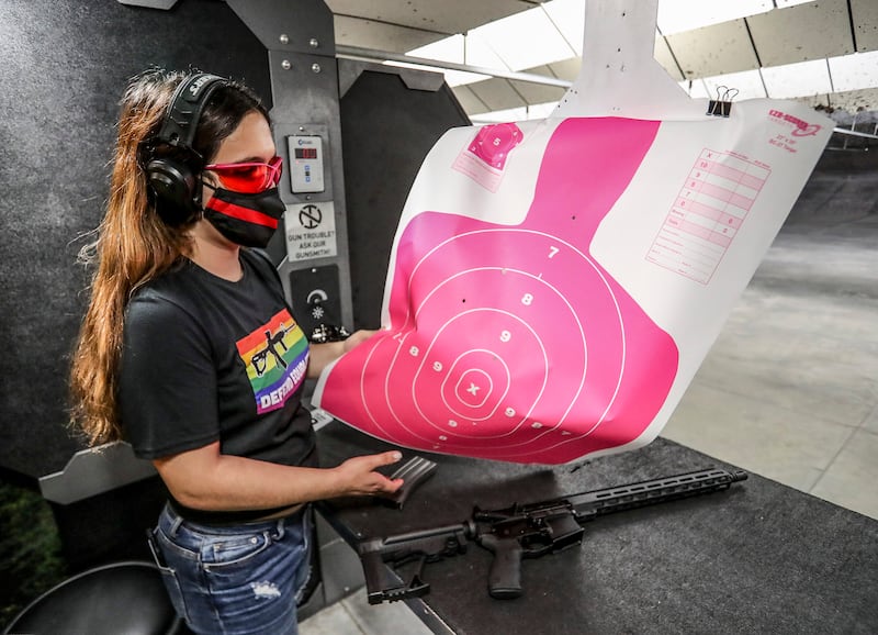 SALT LAKE CITY — Ermiya Fanaeian looks down the barrel of her AR-15, sighting the pink paper target hanging about a dozen yards in front of her.