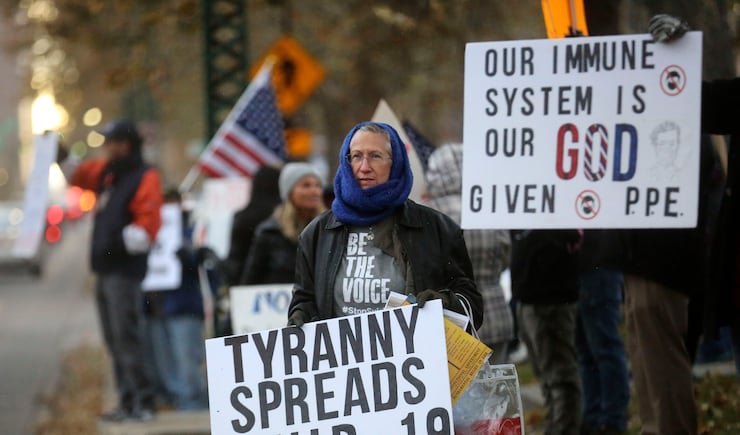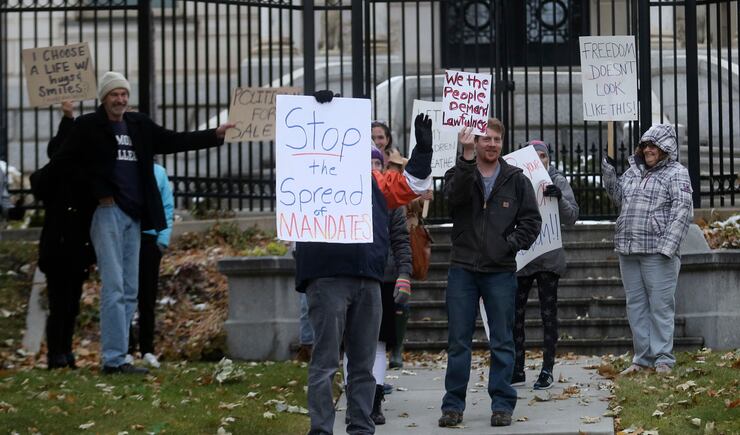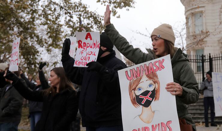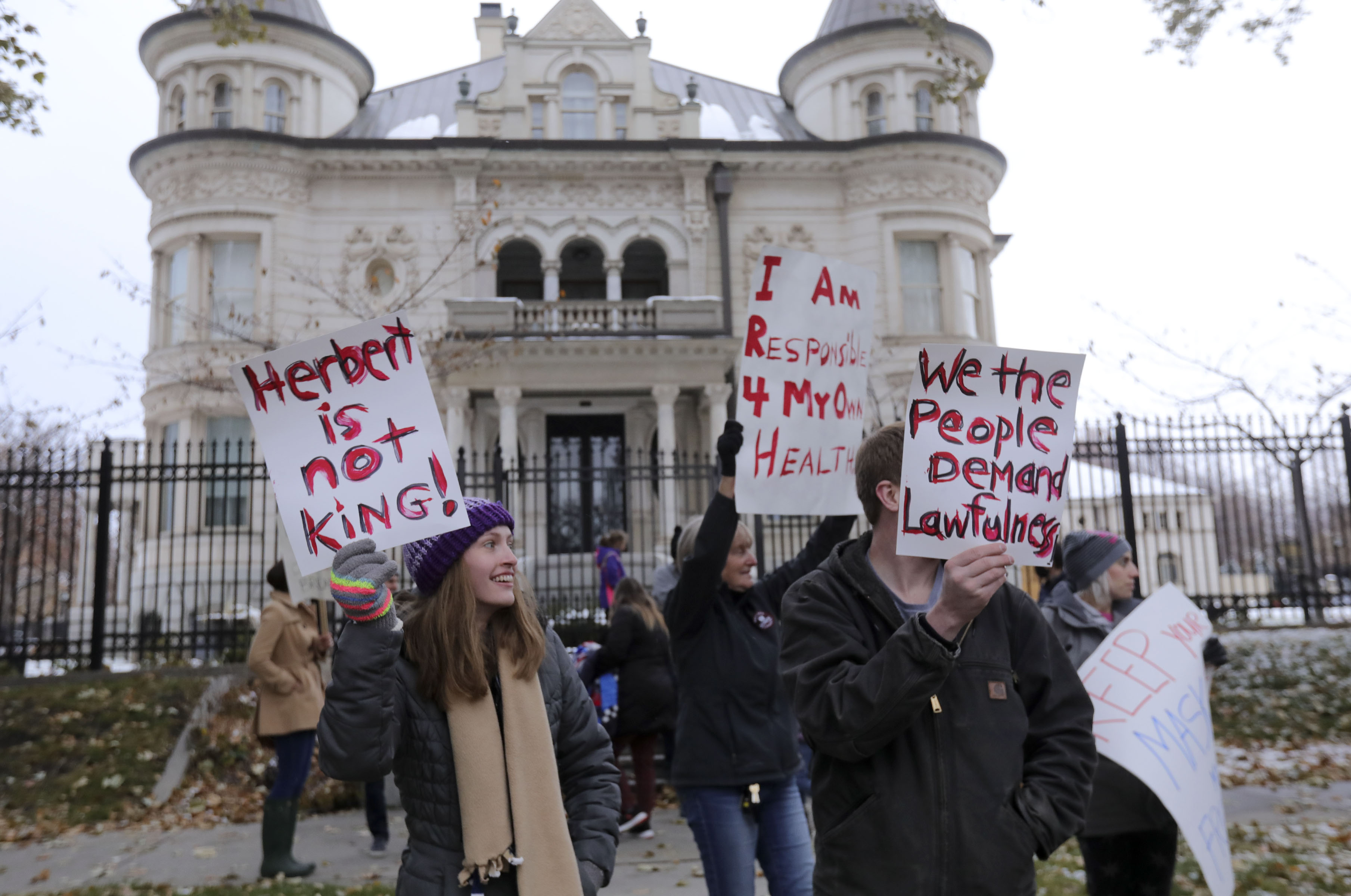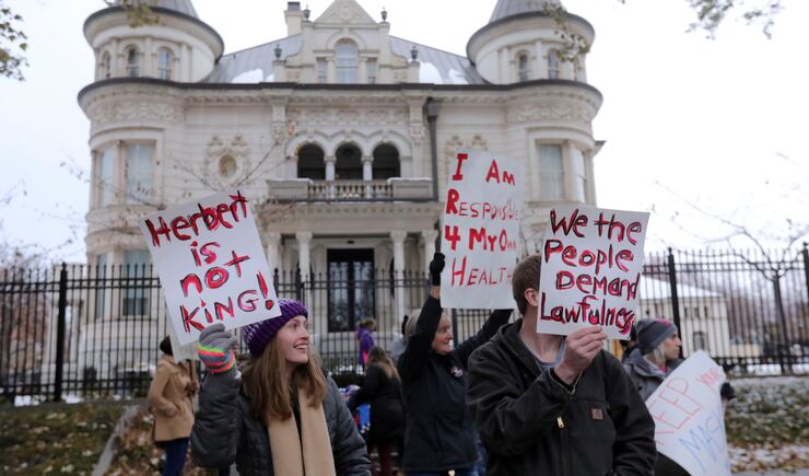 SALT LAKE CITY — Hours after Gov. Gary Herbert’s statewide mask mandate took effect, roughly 50 people gathered outside the Governor’s Mansion on South Temple in Salt Lake City to protest what they say is government overreach and an infringement on their rights.
