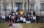 The protest garnered a mix of reactions from passersby, some honking in support, some slowing down to hurl expletives. A few Utah Highway Patrol troopers lingered around the mansion’s front lawn, but a visible police presence was absent Monday evening.