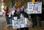 “He doesn’t have the authority to tell us what to do in our own lives, in our homes and what we wear,” said Ken Whetstone, who braved Monday’s freezing temps and light snow to gather outside.