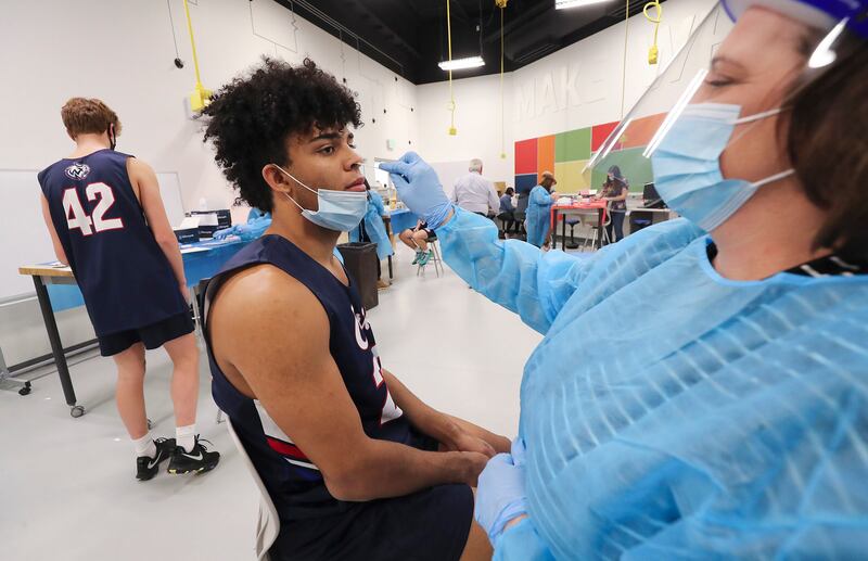 Williams said the school district’s entire team of 25 nurses is implementing the districtwide testing of student-athletes, making its way through all the high schools. Thursday, students at Bountiful High School will be tested and another on Monday, until all 2,000-plus student-athletes and coaching staff are tested.