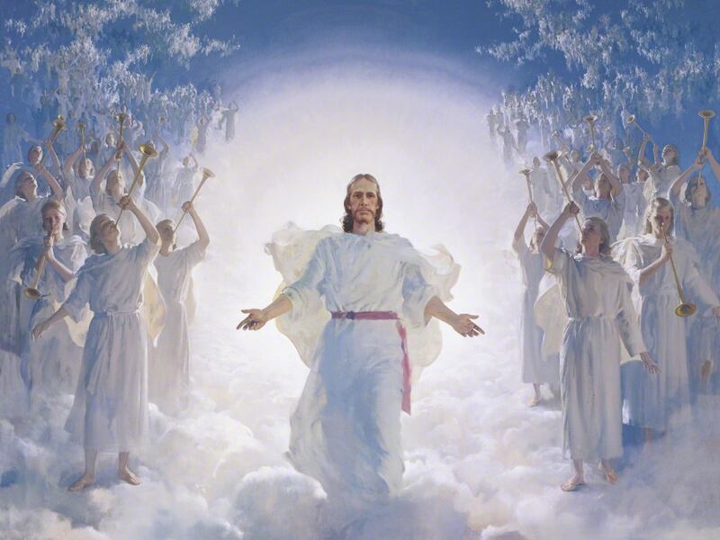Her eyes looked first at the Christ reaching outward, and then to the angels along the sides blowing their magnificent call of the Second Coming. She then quietly read the inscription at the bottom, “Come unto Me”. Her eyes started to moisten as tears formed, and her time streaked face turned 60 years younger.