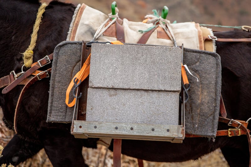 “We gave the contractor the option of using pack animals or a helicopter to move the material,” said Jan Morse, an environmental scientist with the division’s abandoned mine reclamation program. “We have had contractors use helicopters several times, and we have used mules several times. This particular group of mules did some work for us in 2011 in Salt Lake County. They are sure-footed and strong, with each animal carrying about 240 pounds.”