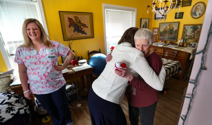 “People need hugs, especially if they’re living alone,” said Kathy Sorenson, Visiting Angels spokeswoman. “They need love and we want to make sure they feel loved.”