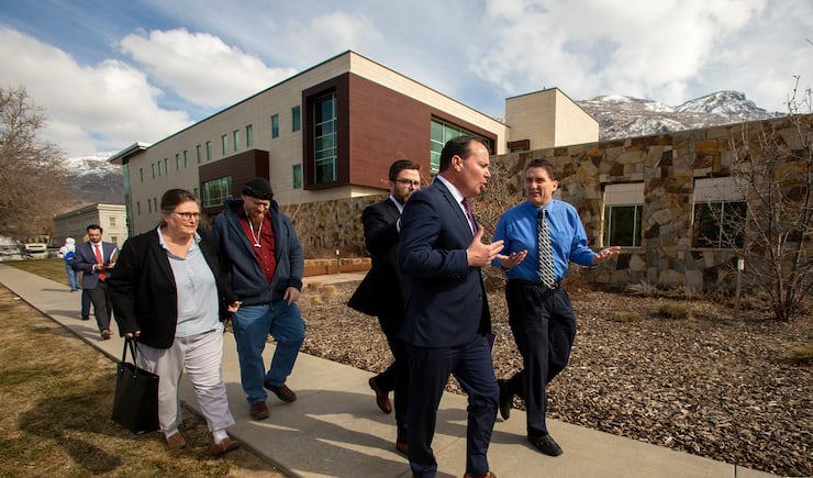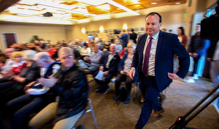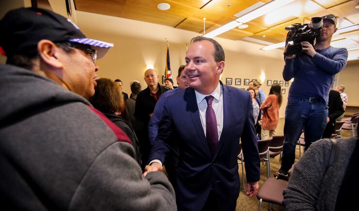 Lee also met with Utah legislators in the in their Republican and Democratic caucuses Tuesday, though the meeting with the GOP lawmakers was behind closed doors. Applause from Republican House members could be heard as Lee stepped into the room.