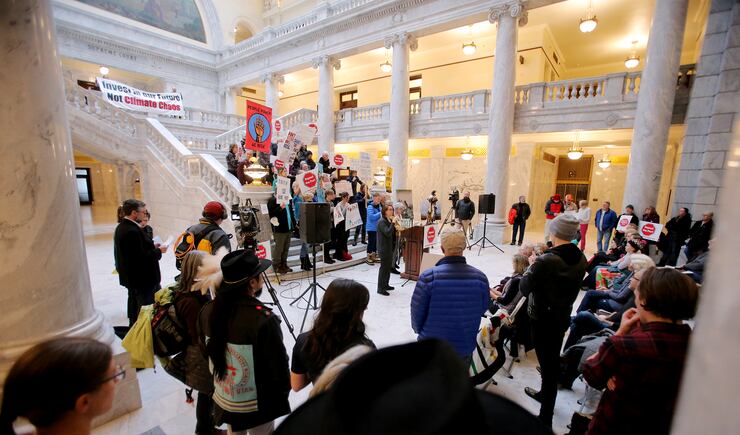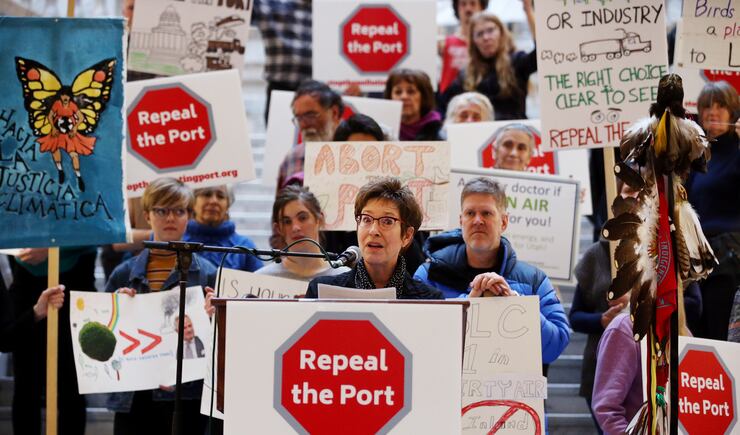 Holding signs that read “Don’t sell Utah short, now’s the time to repeal the port,” and “Is your pocket worth our planet?” port opponents’ chants filled the Capitol’s Rotunda. Activists with the group Stop the Polluting Port encouraged donations to environmental groups to help fund their fight against the port during the 2020 session, during which they pledged to lobby lawmakers every Thursday for repeal of the port authority’s legislation.