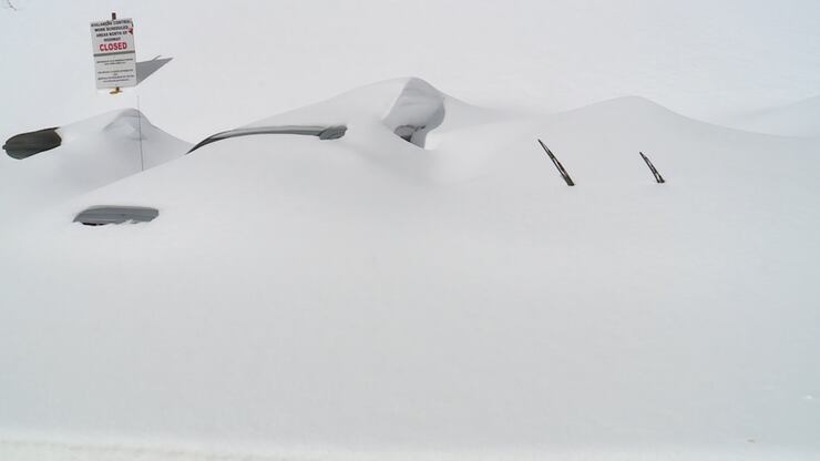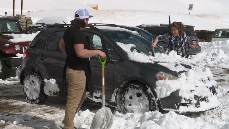 “Mine was completely buried over the hood and around the back. There’s 4 feet of snow. It took me about 30 minutes to get it out,” Potter said, adding that his shovel “has taken a beating today.”