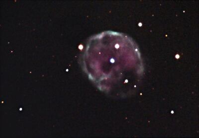 The heavens display a sprinkling of planetary nebulas — called planetary because, through a telescope, one may look like a planet although it is really a gigantic glowing gas cloud. Some are beautifully complex, like the Cat’s Eye.