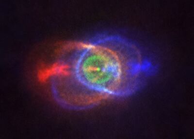 ”The team says the complex structure of the gas in the HD101584 nebula is due to the smaller star’s spiralling towards the red giant, as well as to the jets of gas that formed in this process. As a deadly blow to the already defeated gas layers, these jets blasted through the previously ejected material, forming the rings of gas and the bright bluish and reddish blobs seen in the nebula.”