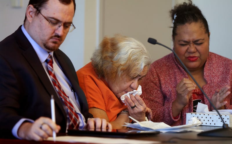 “Your honor, I’m asking you to please have mercy on me. I’m old and so helpless,” she said. Her husband of 46 years is sick, she added. “This has been the longest and hardest time for us, to be separated when I’m in jail.”