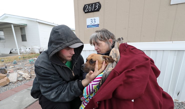 Nearly 50 homes in a mobile home trailer park in West Valley City, near 7200 West and 2100 South, were also damaged by the quake — some rocked off their foundation — leaving dozens of residents displaced. Homes closed off by officials were marked with pink signs reading “UNSAFE” and “Do not enter or occupy.”