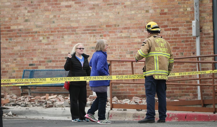 Older buildings, including the historic Panama Building, a building attached to the Empress Theatre and Colosimo’s sausage factory, are damaged, among other buildings, Schulz said, noting bricks and siding had fallen onto sidewalks.