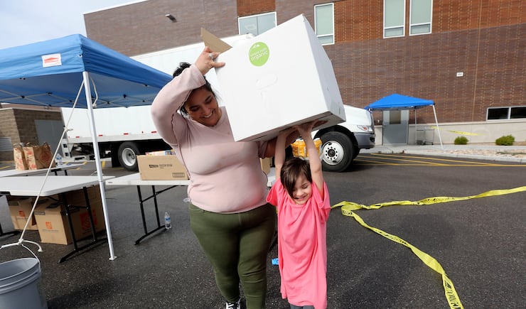 On Friday morning, she was one of hundreds of parents who stopped by the Liberty Community Learning Center in Salt Lake City to pick up a free box of food and hygiene products. With two additional locations in Glendale and Rose Park, the Salt Lake School District and the Salt Lake Education Foundation launched the joint operation Monday to help families struggling with coronavirus-induced layoffs and school closures.
