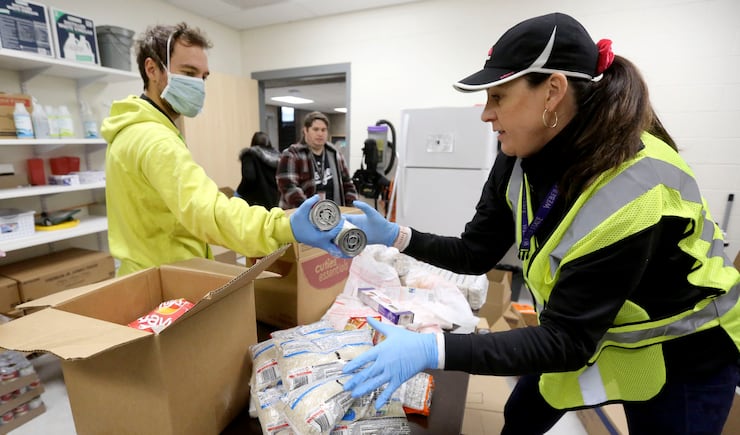 “It means a lot because I don’t have much and every little bit helps,” Runnells said, pausing to put down a heavy cardboard box full of pasta, canned food, soap, toothpaste and more.