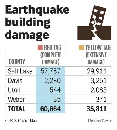 More than 57,000 buildings in Salt Lake County would be extremely damaged or unsafe to enter and more than 300,000 households would be without potable water for 90 days.