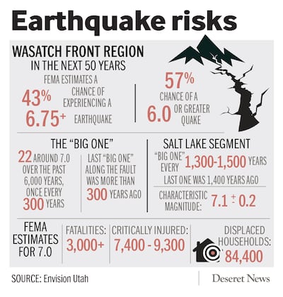 In fact, Envision Utah has released a compilation of data gathered over the years that illustrates just how devastating it would be if one were to happen in Salt Lake County and is preparing to launch an explanatory publication on disaster resilience planning.