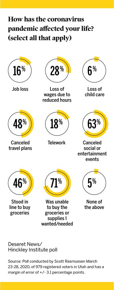 Nearly three-fourths of Utahns say they were unable to buy the groceries or supplies they sought because of the coronavirus outbreak. And nearly half have stood in line to buy groceries, a new Deseret News/Hinckley Institute of Politics poll shows.