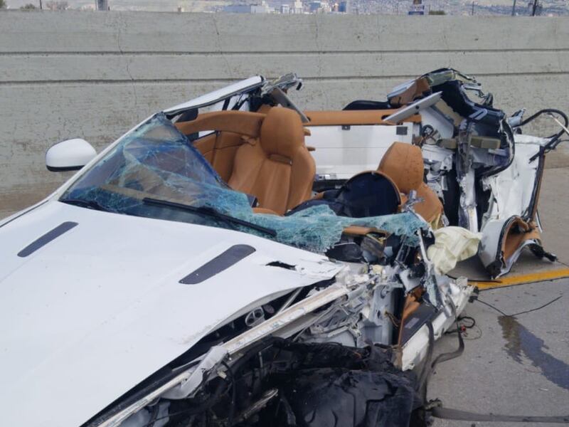 The Aston Martin sustained heavy damage during the crash, including the driver’s door being torn off, according to UHP. Although the driver was buckled, the seat belt ripped out and police say the man was thrown from the car as it struck the barrier.