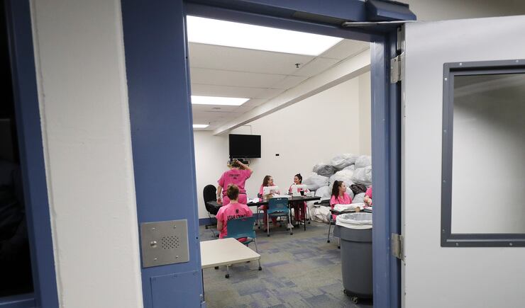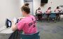 Although the women don’t earn any pay for the hours they work in the converted storage room, it can chip away at court-ordered community service hours. And they take care to observe social distancing to the extent possible in their makeshift workshop.