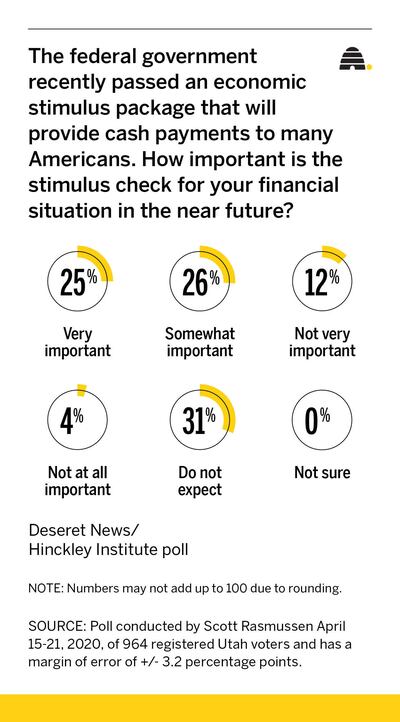 A new Deseret News/Hinckley Institute of Politics polls show that 16% of Utahns will put their small slice of the $2.2 trillion coronavirus relief package into savings.