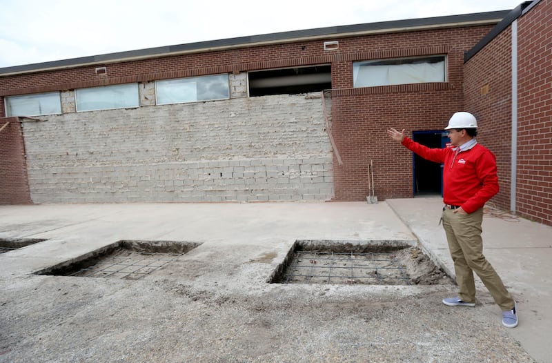 Plans include shoring up the exterior wall in the pool area and then rebuilding the wall “so the school can continue to be used for the next four years until the new school opens,” he said.
