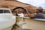 Two days earlier, the pair hands out food at the Montezuma Creek office, then they chop a load of firewood and fill two cars with bags of groceries and bottles of water and hit the road for the day. They drive an hour before the first stop, a small house just off the highway that belongs to Harlin Harrison, who is 92 and napping when they arrive.